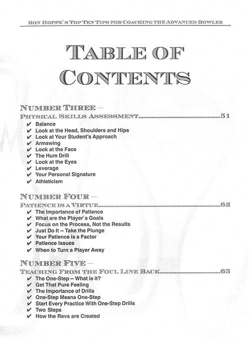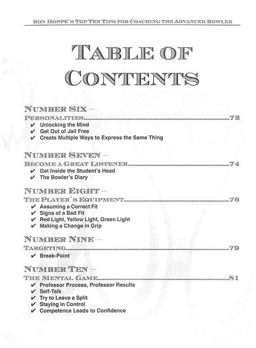 This book by the world renown USBC Coaching Gold Level coach Ron Hoppe features many trips that can help coaches improve their coaching skills and bowlers improve bowling skills for today's modern game.